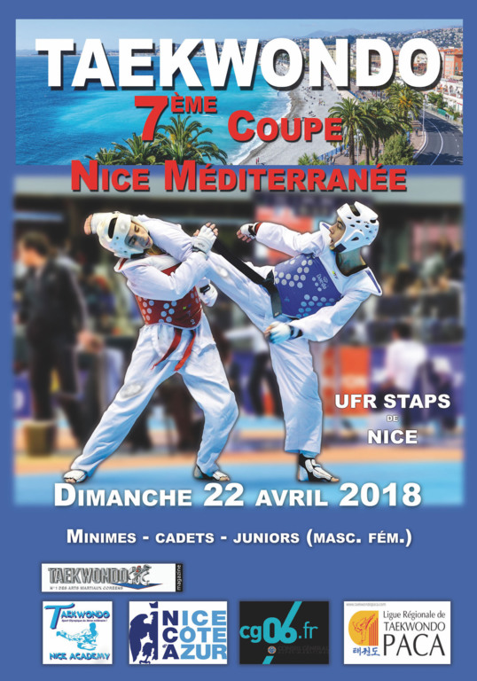 Grâce au succès des éditions 2003, 2004, 2005, 2006, 2007 et 2008, l’association TAEKWONDO NICE ACADEMY est heureuse de vous annoncer le retour de la 7ème coupe Nice Méditerranée qui se déroulera le 22 avril 2018 à Nice.