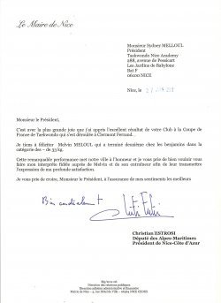 suite à sa performance à la coupe de France le maire de Nice a félicité MELVIN MELOUL !