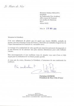 Christian ESTROSI maire de Nice n'a pas manqué de féliciter Jassim Brikik pour sa performance de Toulouse !