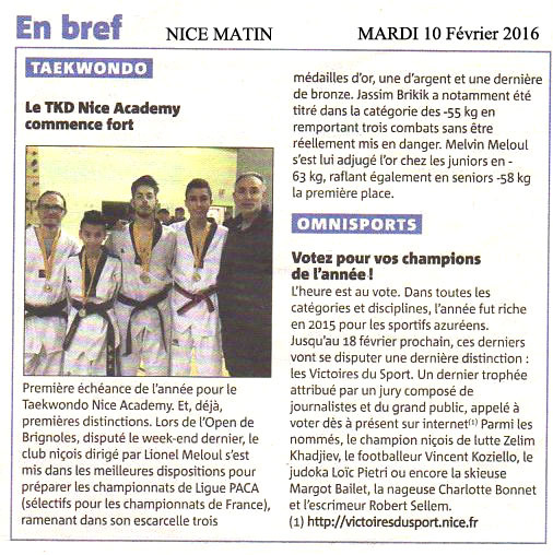 Le quotidien Nice Matin revient sur les performances de nos élèves à Brignole ...