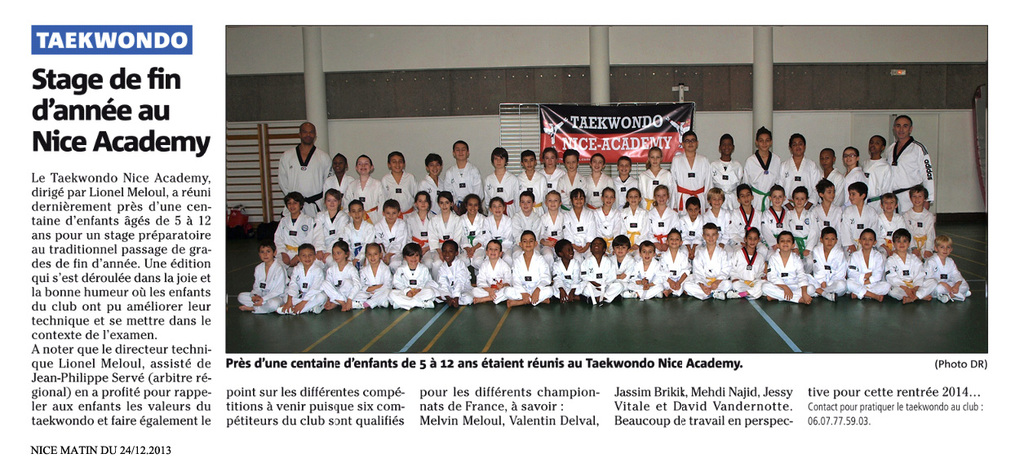 Nice matin revient sur le stage enfants du TAEKWONDO NICE ACADEMY dirigé par Lionel Meloul