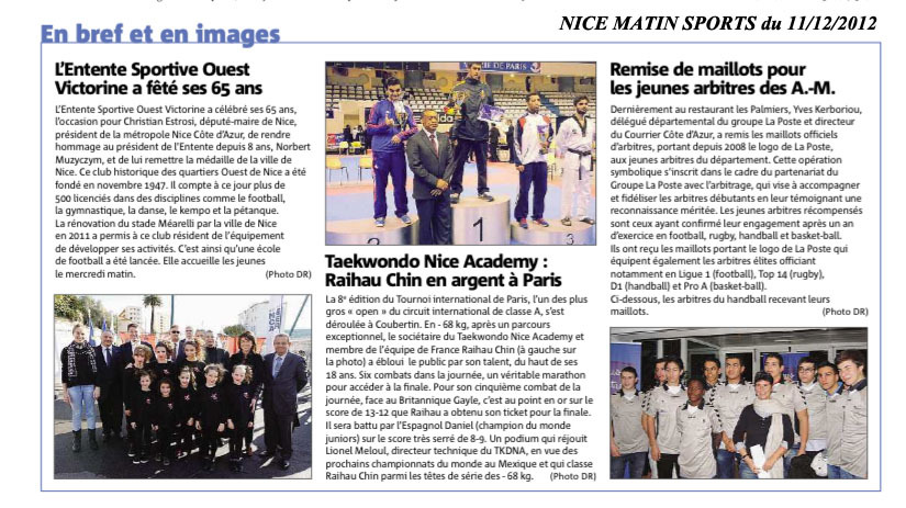 Notre quotidien NICE MATIN revient sur la belle performance de Raihau CHIN lors du TIP 2012