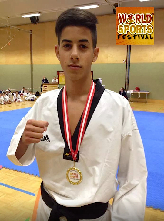 C' est en Autriche à Vienne que du 3 au 6 juillet que se sont déroulés les WORLD SPORTS FESTIVAL, compétition internationale réunissant près de 2500 athlètes, 25 nations dans de nombreux sports tel que le basket, football, tennis, volley, badminton, natation, tennis de table, lutte et bien sur le takwondo. Melvin Meloul 15 ans junior1 avait décider de relever le défie dans la catégorie des séniors -21 ans. Parie gagné puisque le jeune sociétaire du Taekwondo Nice Academy remporte une belle médaille d'or en - 54 kg éliminant coup sur coup Roumanie (forfait), Bulgarie en demie et Inde en finale sur le score ans appel de 13-3.